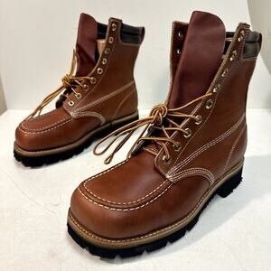 NWT VTG Knapp Boots 7" Moc Toe Steel Toe S. B. Foot Made in USA NOS 8.5 Wide EE
