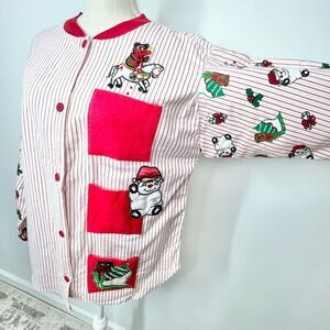 NWT VTG Moon Dance Christmas Teddy Bear Holly Candy Cane Striped Pajama Set, flannel type material, front patch pockets with embroidered bears and real bell