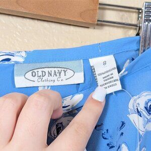 NWT VTG Old Navy Blue Floral Midi Skirt Side Slit sz 8 Cottage Fairy Deadstock