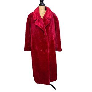 NWT VTG Red Faux Fur Long Line Full Length Duster Coat Mob Wife Glam Hollywood S