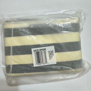 NWT Kate Spade Striped Black & Cream Shiny Leather Zip Wallet Wristlet 7.5"x5" pink inside