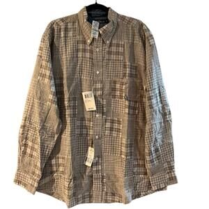 NWT VTG Y2K Nautica Shirt Mens Tan and White Madras Button Down Full Fit Size L