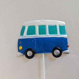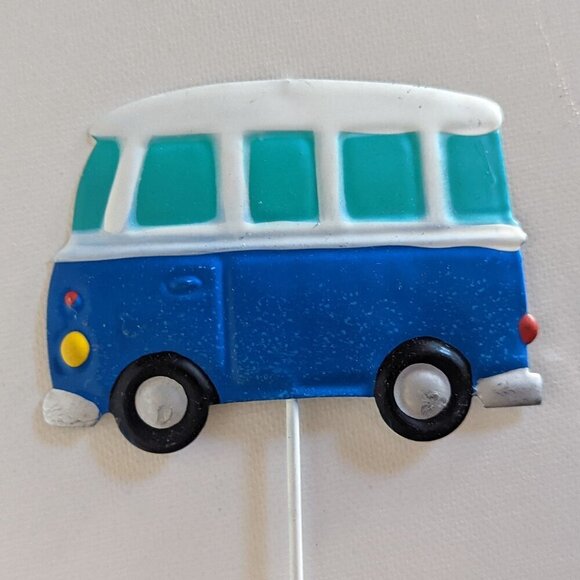A fun blue metal vintage Volkswagen style van plant pick by Michael's Ashland brand, 'Summer' collection. This brightly painted VW Van on a metal pick is perfect for adding some color to your plants or flowerbed. This unique outdoor patio decor item measures: approx 4" wide car /van on a 12" tall pick, and is new with tags. It makes a perfect accessory for your Summer beach house, porch or garden :)
