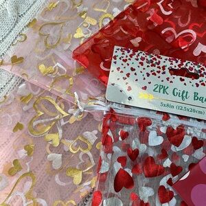 NWT Valentines Day gift bags 11 total 8 are see through mesh bags 5x8” w/ drawstrings —3 are 6.5” h x 4.75” w x 2.25” deep…so cute for candies or small gifts for family and friends