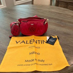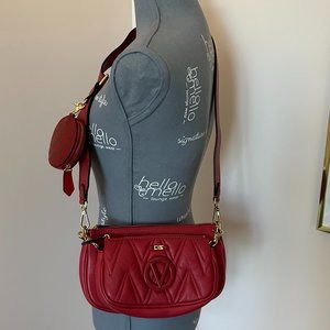 NWT Valentino By Mario Valentino 3-In-1 Quilted Leather Shoulder Bag & Pouch Set
