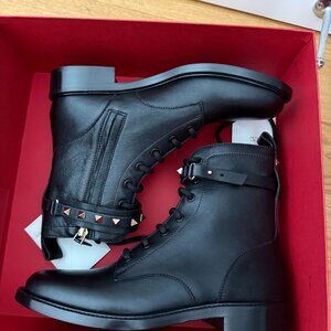 NWT Valentino Garavani Black Leather Ankle Boots Rockstud Buckle Strap Sz 40.5