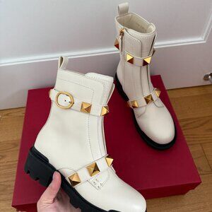 NWT Valentino Garavani Combat Boots Calfskin Leather Gold-tone Studs Sz 36