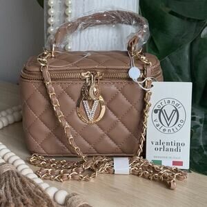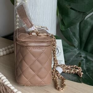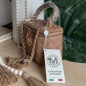 NWT Valentino Orlandi Quilted Vanity Box Bag | Chain Strap | Taupe