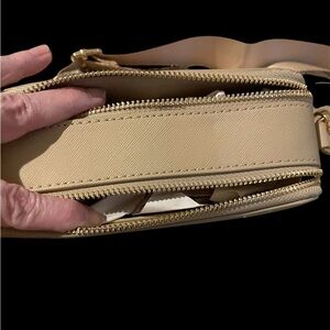 New VALENTINO ORLANDI Studded Double Zip Crossbody Camera Bag Purse Tan. Condition is New with tags.