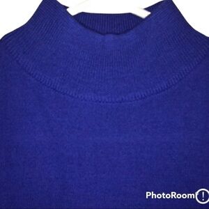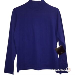 NWT Valerie Stevens 100% Wool Mock Neck Blue Sweater