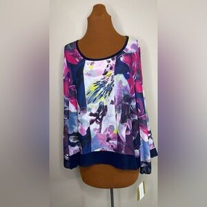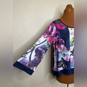 NWT Valerie Stevens Pullover Blouse Bell Sleeves Flowy Floral Size Small