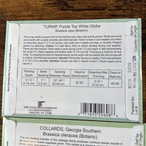 Set of Valley Greene seed packets including collards, turnip, and onion. Perfect for gardening enthusiasts.