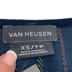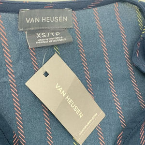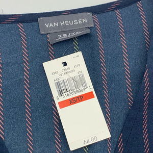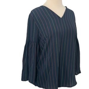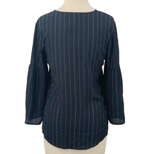 NWT Van Heusen V-Neck Pullover Blouse 3/4 Bell Sleeve Navy Vertical Striped XS