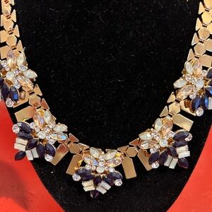 Beautiful gold necklace with navy blue and crystal stones Brand new