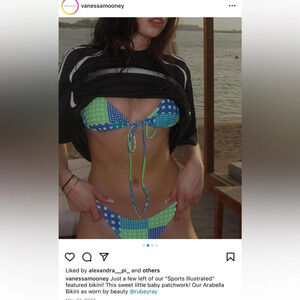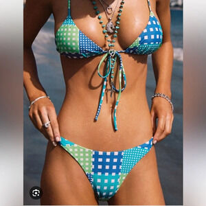 NWT Vanessa Mooney Arabella sexy bikini bottom patchwork green blue XL