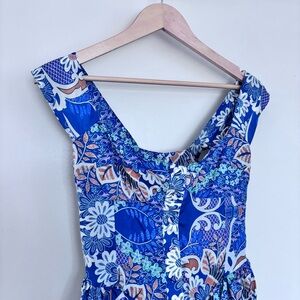 NWT Vanessa Mooney The Elisabeth Daisy Silk Blue Floral Romper Size Small