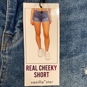 NWT Vanilla Star Real Cheeky Distressed Raw Edge Cuff Denim Short