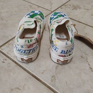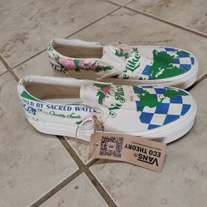Brand new with tags vans slip on shoes. Have a red line on the inner soul but other than that perfect. Vans is working more than ever to move towards more circular products and systems that use regenerative and recycled materials, design out waste, and create systems that keep products in use and out of landfills. Designed as part of their Eco Positivity Collection and made with sustainability in mind, this slip-on shoe is made with a 50% recycled cotton 50% hemp upper, a responsibly-sourced natural rubber outsole, and features an allover print reminding us that there’s no place like this earth we call home.