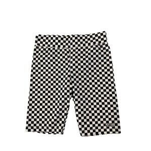 The Vans Flying V Print Legging Shorts are high-waisted shorts featuring an allover checkerboard pattern and the Vans logo on the left leg.