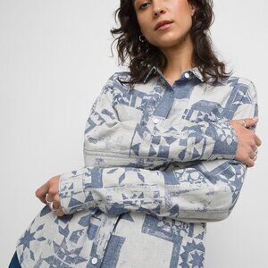 NWT Vans HOMESPUN LONG SLEEVE WOVEN TOP in Ashley Blue Size XS