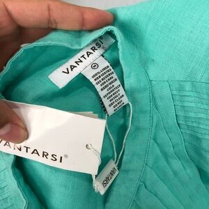 NWT Vantarsi Dress Pintuck Notch Neck Long Sleeve Linen Tunic Dress