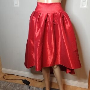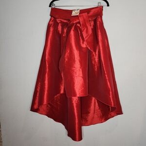 NWT Varga Red Pleated Hi Low Belted Stretch Taffeta Skirt Size Large