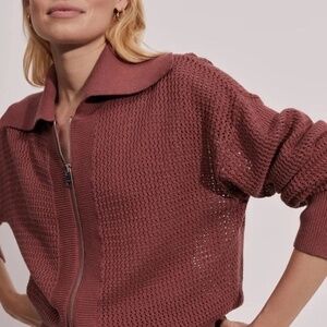 Cut to a standard fit with a signature oversized collar, this zip-through pointelle knit jacket is the ideal layering piece for any occasion. It's pocketless, lightweight design makes it perfect for throwing on post-match.