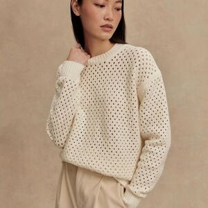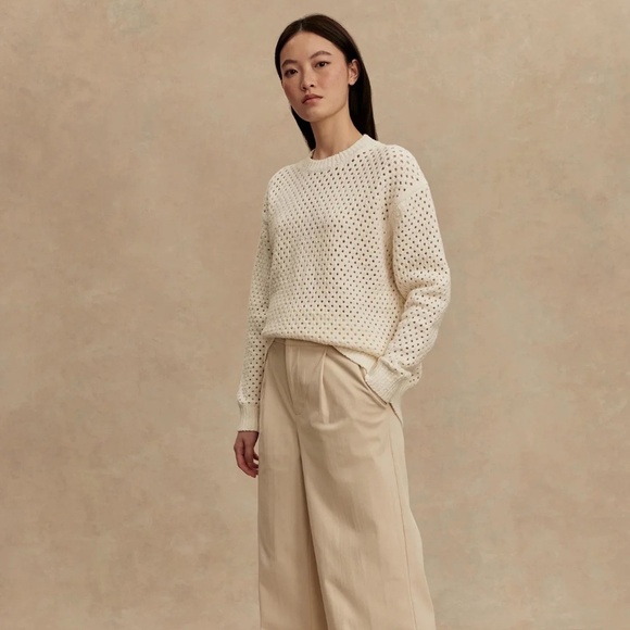 A sweater-version of the Mandy, the Grady blends elegant design with everyday wearability. Crafted from a cotton blend bouclé yarn in an all-over mesh pointelle stitch, it comes in a relaxed fit with a crew neckline, dropped shoulders, and a curved back hem.