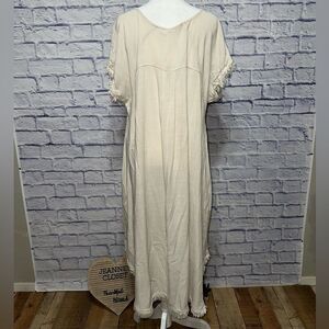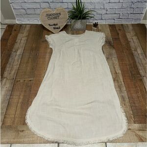 Vasna NWT linen blend dress High low hem Size M Made in Italy Raw hem Pockets Scoop neck Beige color