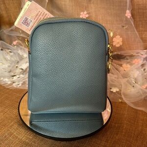 NWT Vegan Blue/English Tan Mini Faux Leather Crossbody. So soft.
