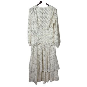 NWT Veiled New York Narjis Side Rouched Maxi Dress Beige Floral Women’s Sz Large