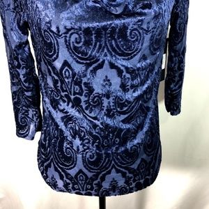 NWT Velvet Burnout Cowl W Tank Blue 3/4 Sleeve
