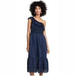 NWT Velvet By Graham Scott Blue One Shoulder Midi Dress