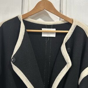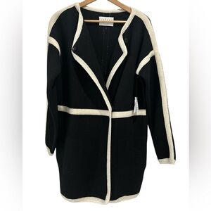 NWT Velvet By Graham & Spencer Wool Black and Cream Mid Length Sweater Coat - M