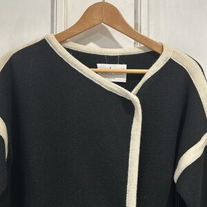 New with tags Velvet By Graham & Spencer Wool Black and Cream Mid Length Sweater Coat