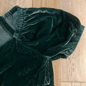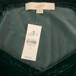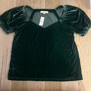 NWT Velvet Dark Green Puff Short Sleeve V-Neck Loft Blouse, Size Medium