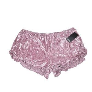 NWT Velvet Pajama Set Sz.XL Pink Top Shorts Lounge Sleepwear Ruffle Feminine