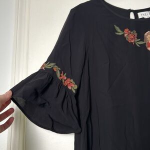 NWT Velvet by Graham & Spencer Black Embroidered Floral Shift Dress Size XS