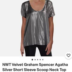 NWT Velvet by Graham and Spencer Agatha Silver Short Sleeve top - size Large