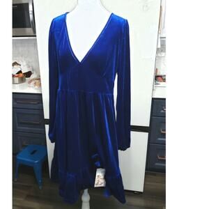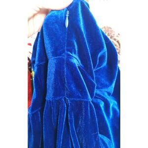 Glamorous velvet blue sapphire midi tiered dress v-neck long sleeve balloon whimsigoth elegant and flowy Jewel toned new with tags Halara brand size large women's. Perfect for the holiday season, Christmas party, dinner, photo