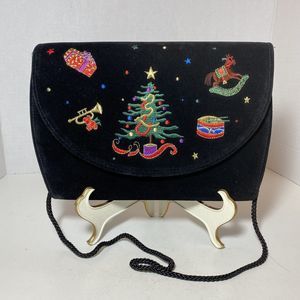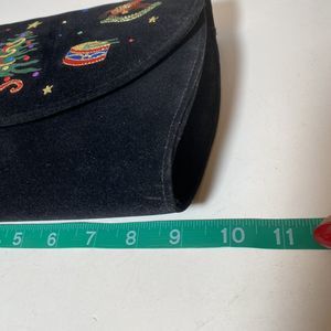 NWT Velveteen Clutch/Crossbody Purse Bag Embroidered Christmas Motif 9 x 7 x 3