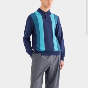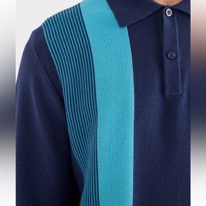 NWT Venroy Long Sleeve Stripe Cotton Knit Polo