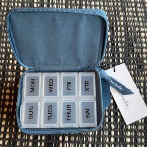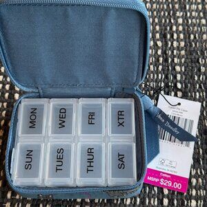 Includes a removable organizer that has eight compartments - labeled for the days of the week plus one extra.