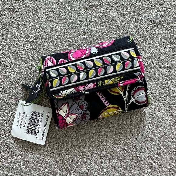 NWT Vera Bradley Euro Wallet in Moon Blooms Retired Pattern Black Pink Floral