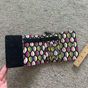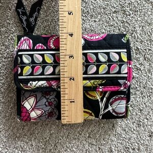 Chic Vera Bradley wallet with a black and pink leaf design. Ideal for keeping essentials organized.