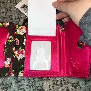 NWT Vera Bradley Flower wristlet wallet. In great condition, tags are attached. The strap can be detached from wallet. Has a magnetic clasp. Can hold cash, credit cards, and has a slot to hold your ID. Let me know if you have any questions. Feel free to make an offer!
