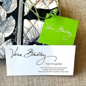 NWT Vera Bradley Leaf Pattern Clutch in Black/Cream 9”x4.5x1” Kiss-lock Hardware