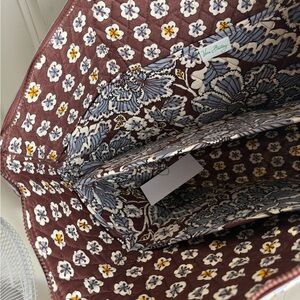 Sophisticated and stylish, this Vera Bradley Miller Bag in the gorgeous Slate Blooms pattern features soft floral prints in shades of yellow, white, and gray against a brown background. Perfect for work, travel, or everyday use β and hard to find in new condition!