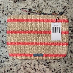 NWT Vera Bradley Straw Beach Wristlet Coastal Paradise Parrot Embroidered New