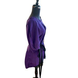 NWT Vera Wang Purple Silk Blouse w/Black Wrap Around Belt Size 8